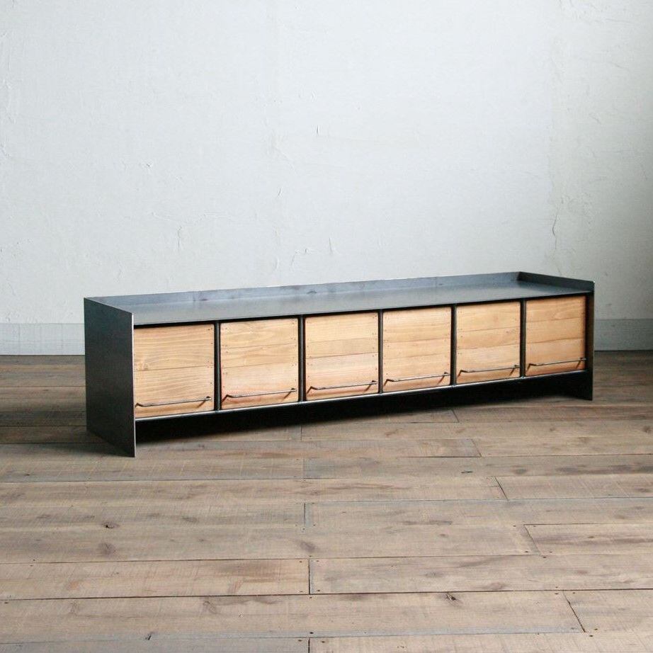 オーダー専用 アイアンと木箱のローチェスト W220 T38 D48