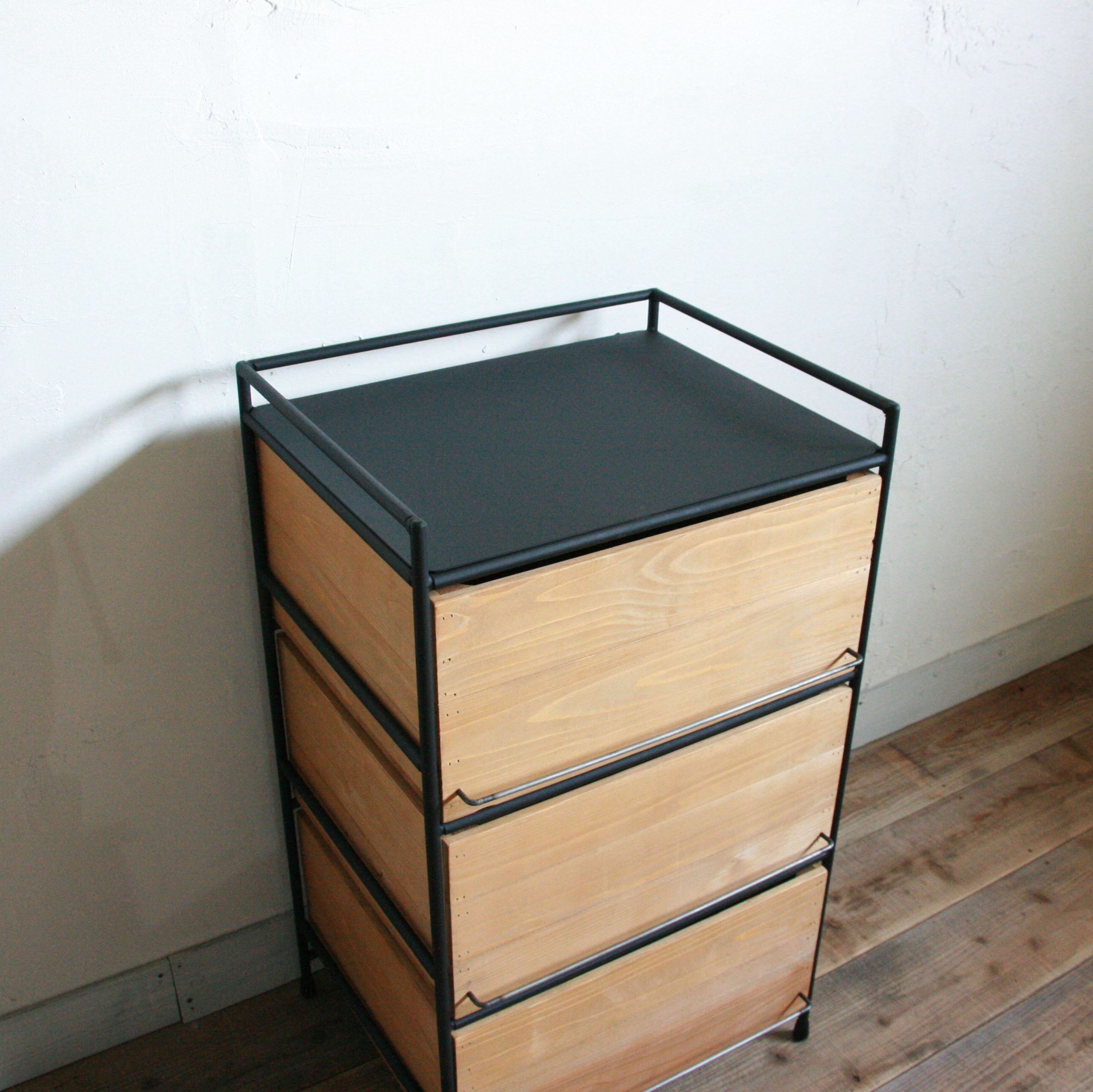 オーダー専用 アイアンフレームと木箱の縦長チェスト (5段)