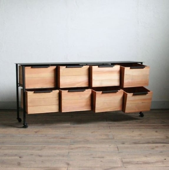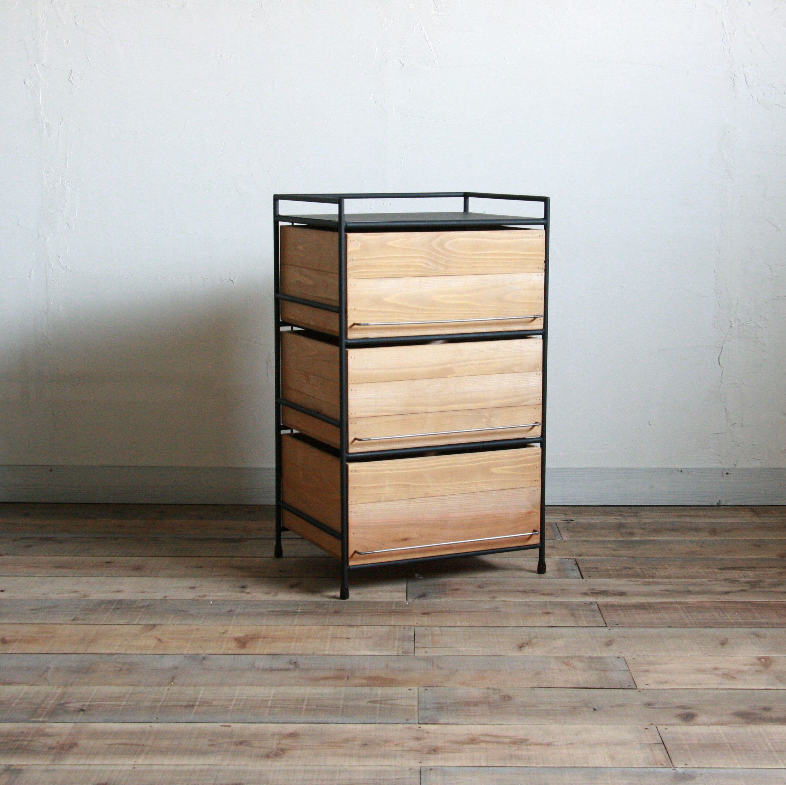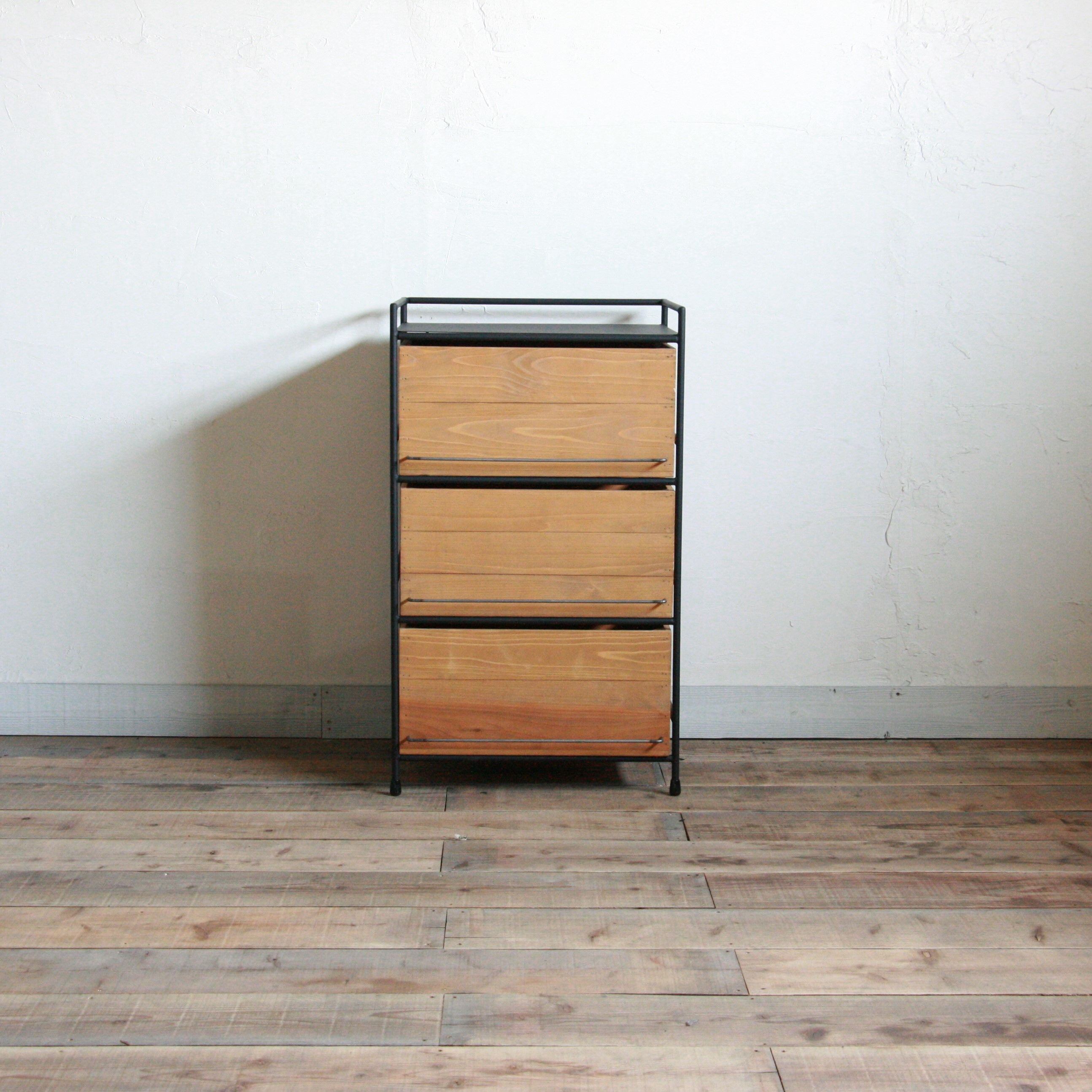 オーダー専用 木箱の縦長チェスト 取手モダンタイプ (2列3段)