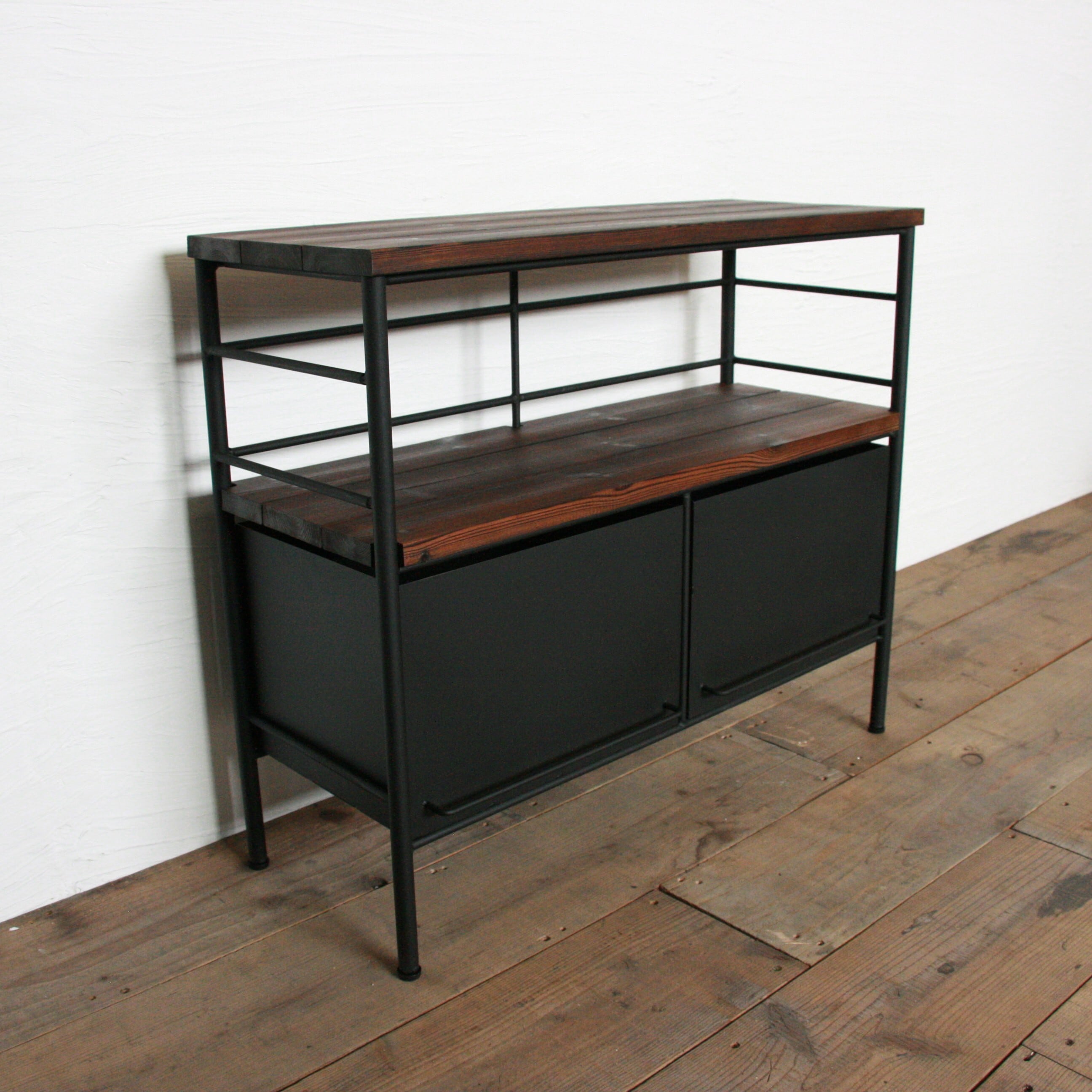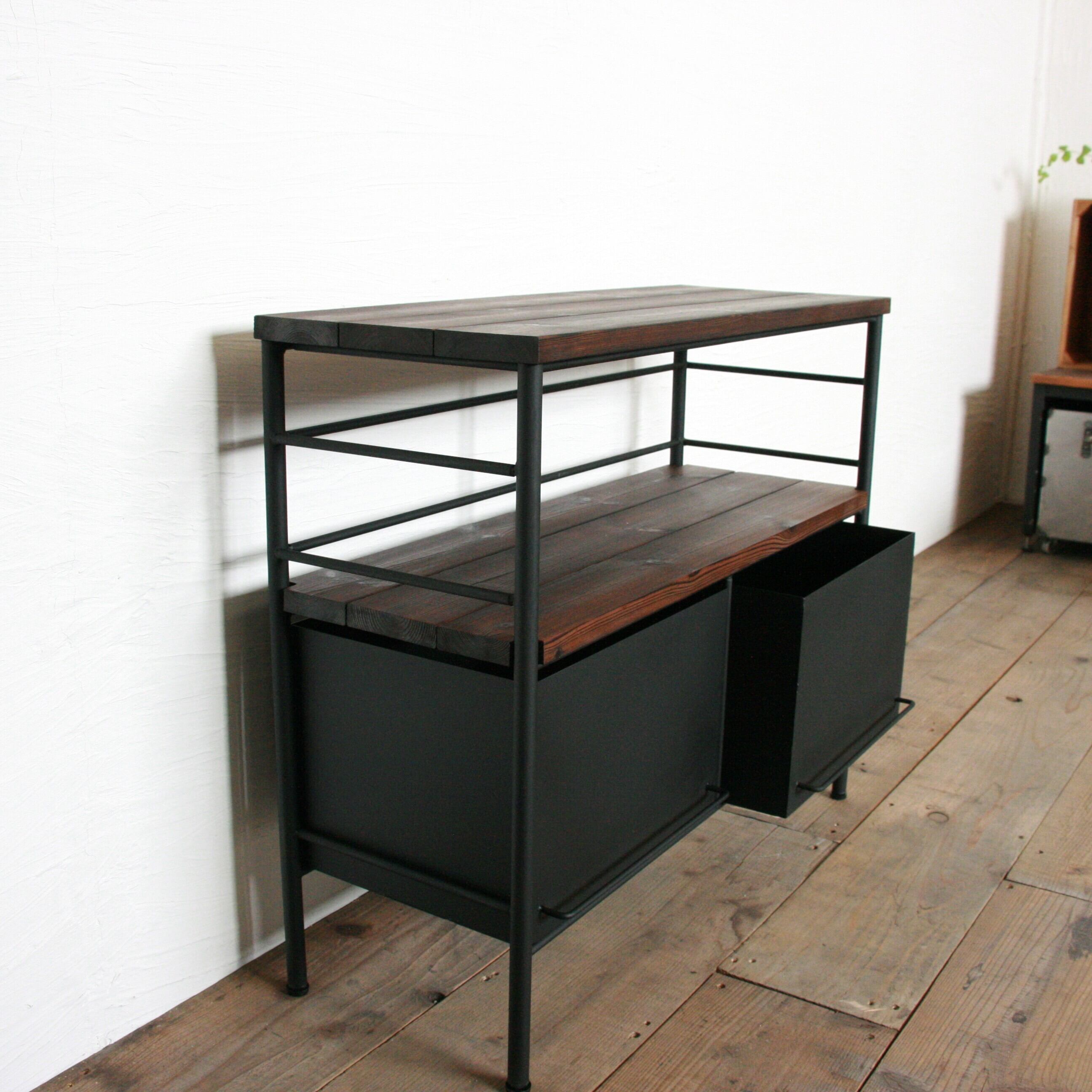 オーダー専用 アイアンのドロワーシェルフ 2列1段(引き出し木製)