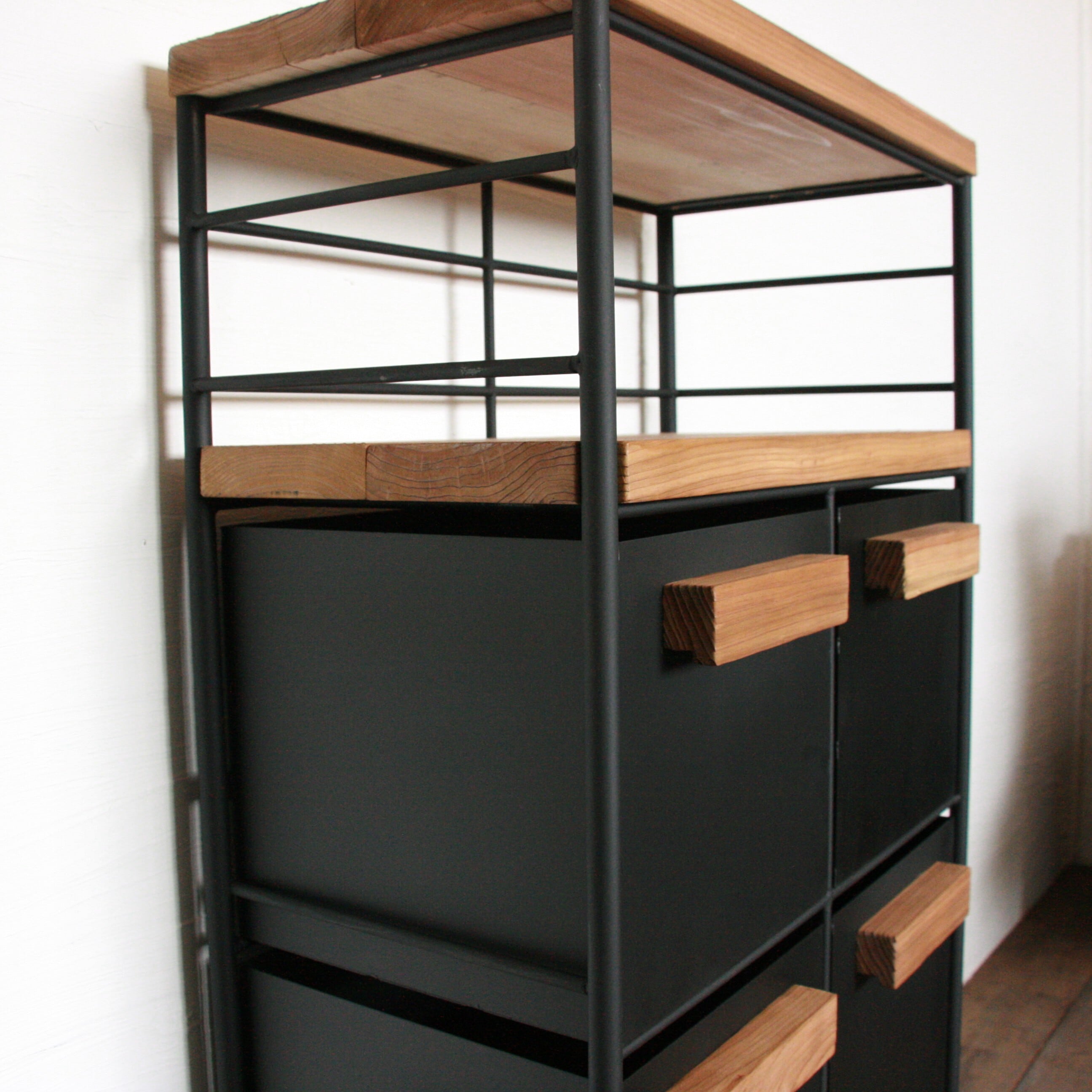 アイアンのドロワーシェルフ#杉板 引出し2列3段