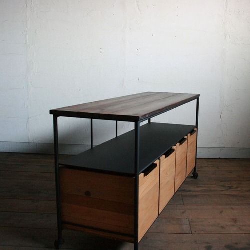 アイアンと木箱のドロワーシェルフ#キャスター付き