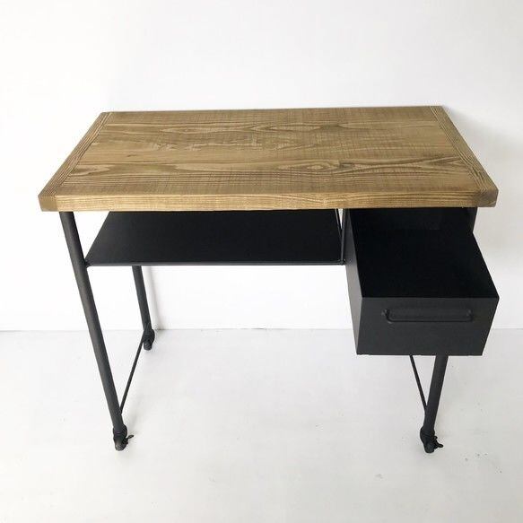 サイドの引き出しもアイアン製でおしゃれ且つ収納できて便利