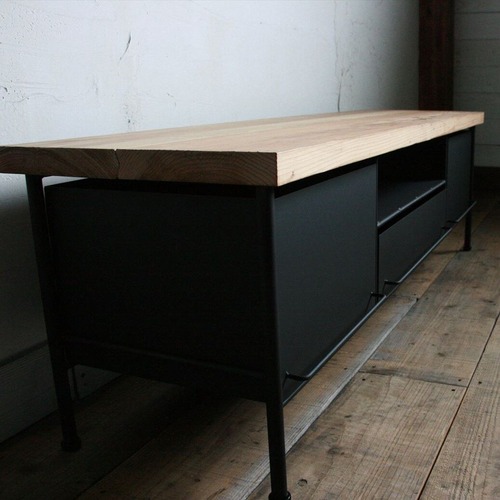 アイアンと杉板のローボード