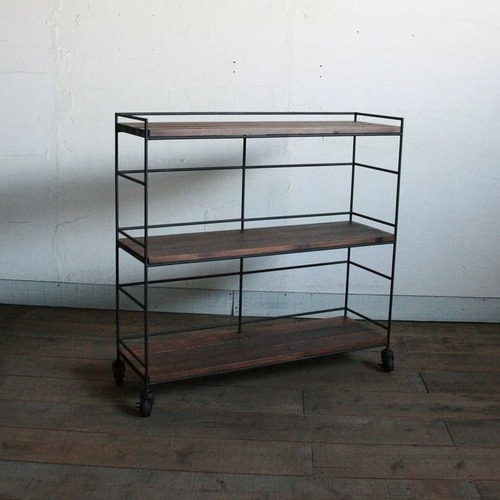 オーダー専用 アイアン&ウッドシェルフ キャスター付き W100D35T75