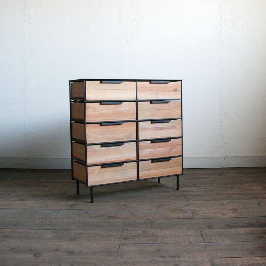 オーダー専用 キャスター付きアイアンと木箱のドロワー2列4段&キャスター付きドロワーシェルフ