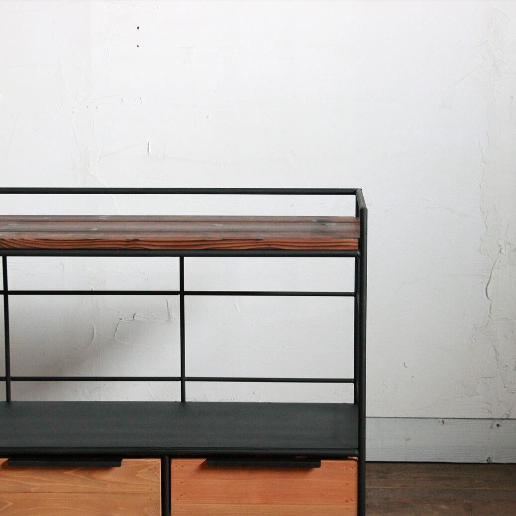 オーダー専用 アイアン&ウッド 引き出し付き シェルフ 2列2段タイプ 20240207