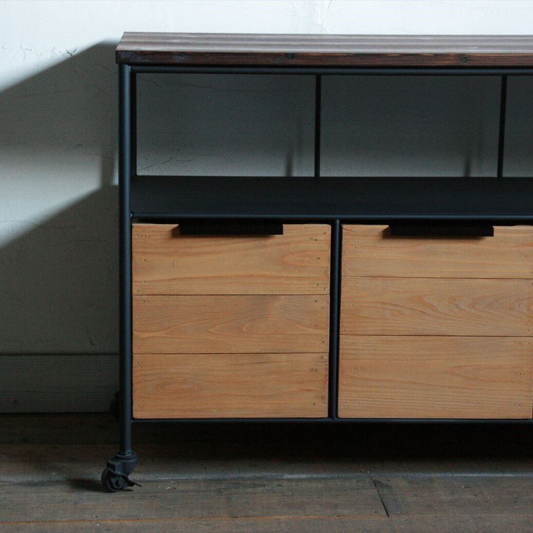 オーダー専用 アイアンと木箱のドロワーシェルフ#キャスター付き 20240326