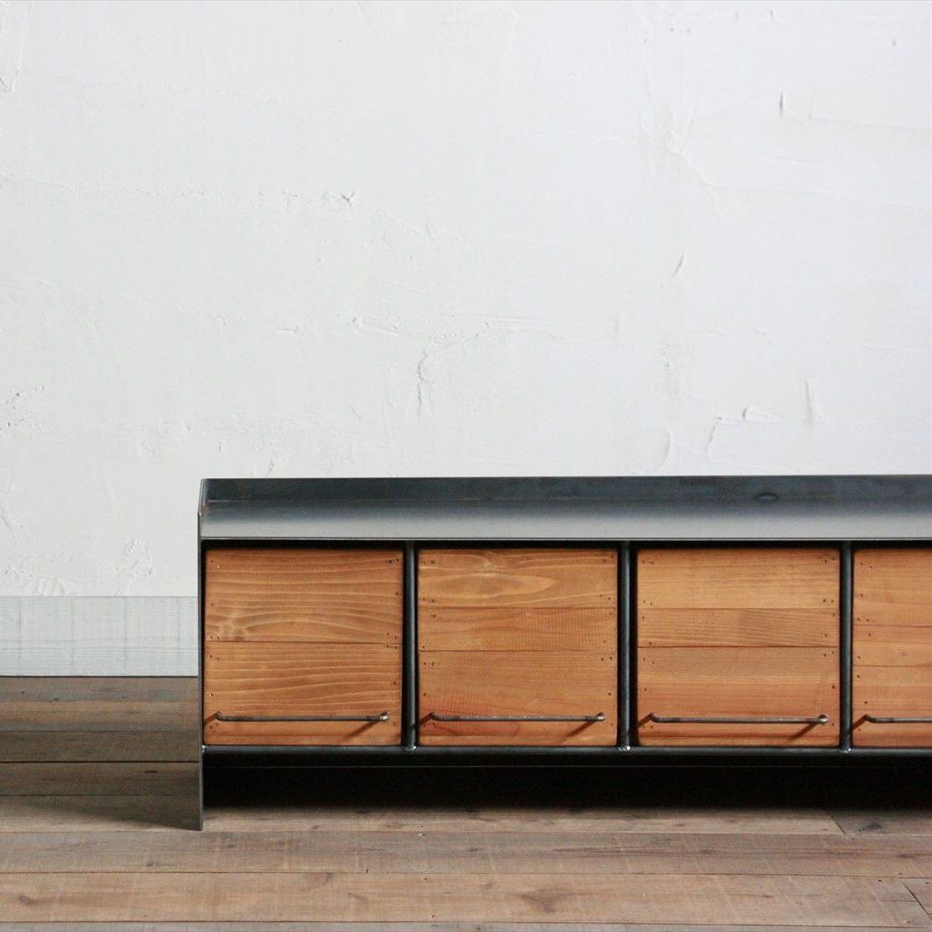 オーダー専用 アイアンと木箱のローチェスト 引き出し4列【2台】