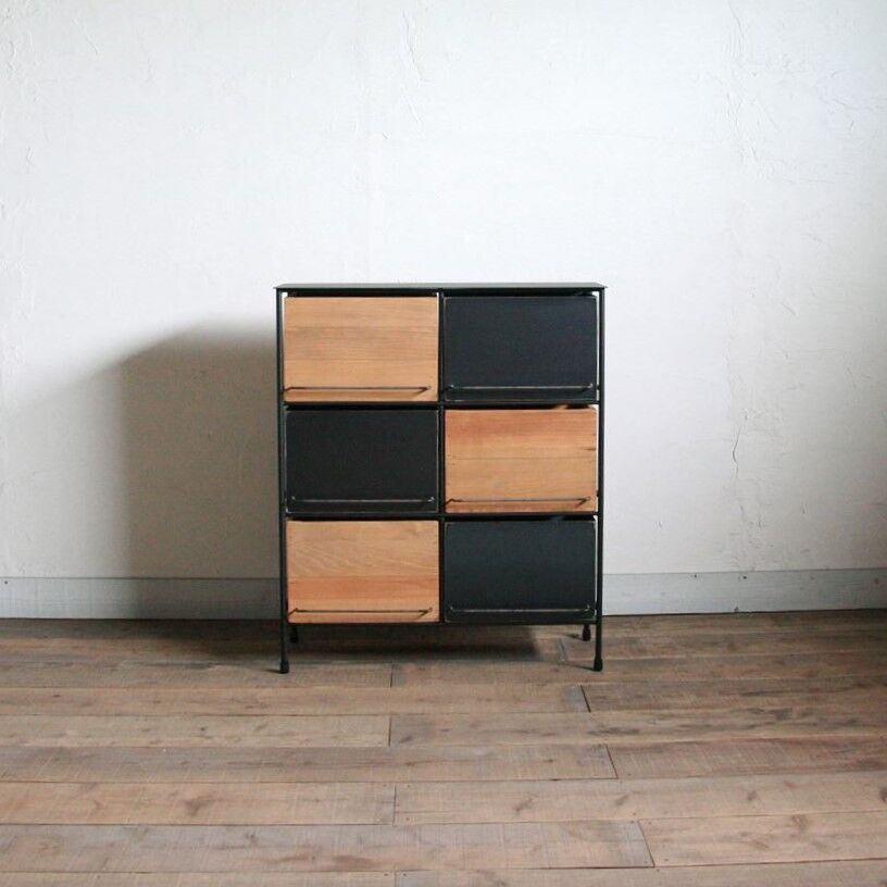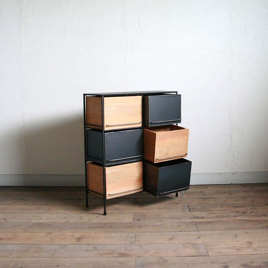 オーダー専用 アイアンと木箱のチェスト 2列2段