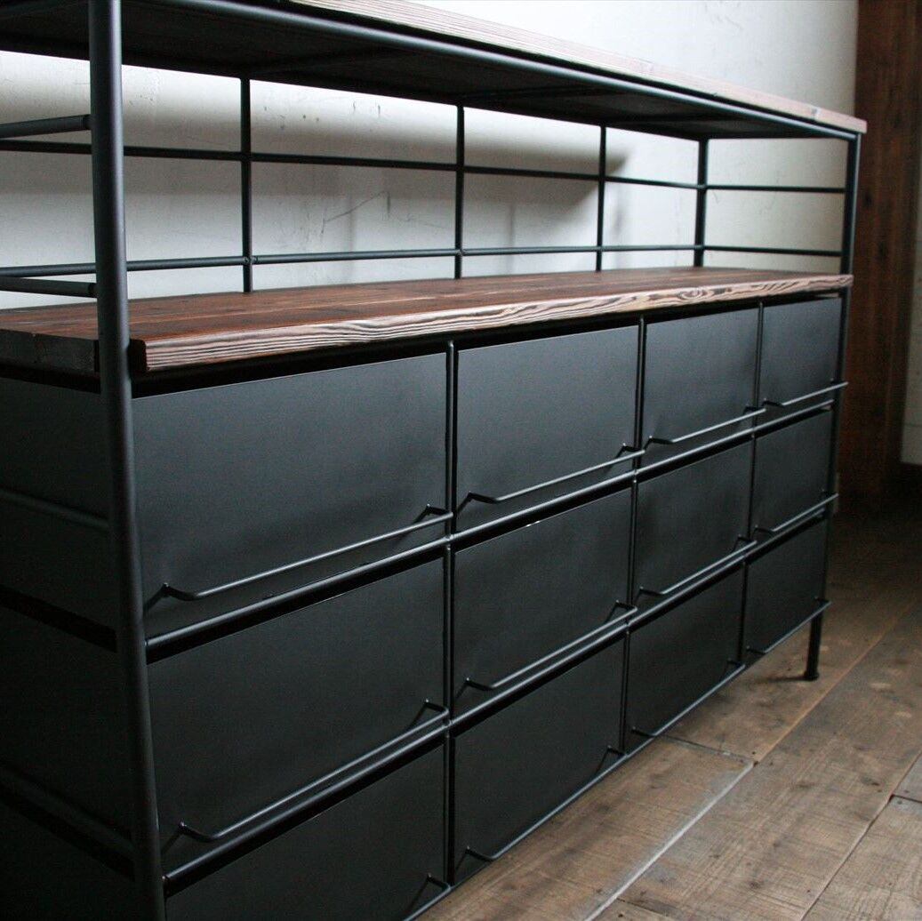 オーダー専用 アイアンのドロワーシェルフ 4列3段 W149T116D40